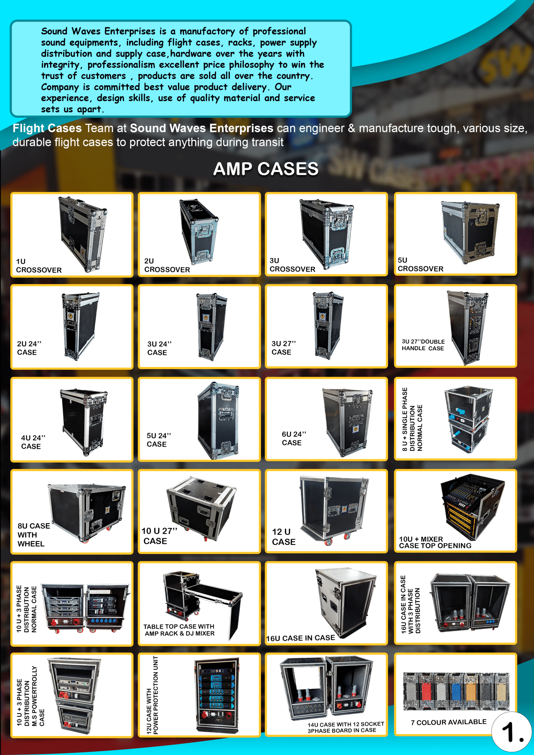 Sound wave enterprises is a manufactory of professional sound equipment’s including flight cases, racks, power supply distribution and supply case, hardware over the year with integrity, professionalism excellent price philosophy to win the trust of customer. having decades of knowledge in the field, we have developed a name for producing goods that satisfy the best criteria of dependability, protection, and usefulness.